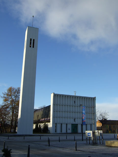 Torget, Sørsia. 600 plasser. Bygd i betong, tre og glass, og har en utradisjonell kirkeutforming: